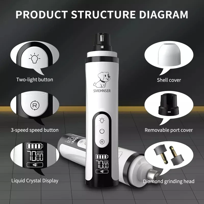 Electric Pet Nail Grinder With LED Light Cat Dogs Nail Clippers USB Rechargeable Paws Nail Cutter Grooming Trimmer Pet Manicure Supplies for Dropship